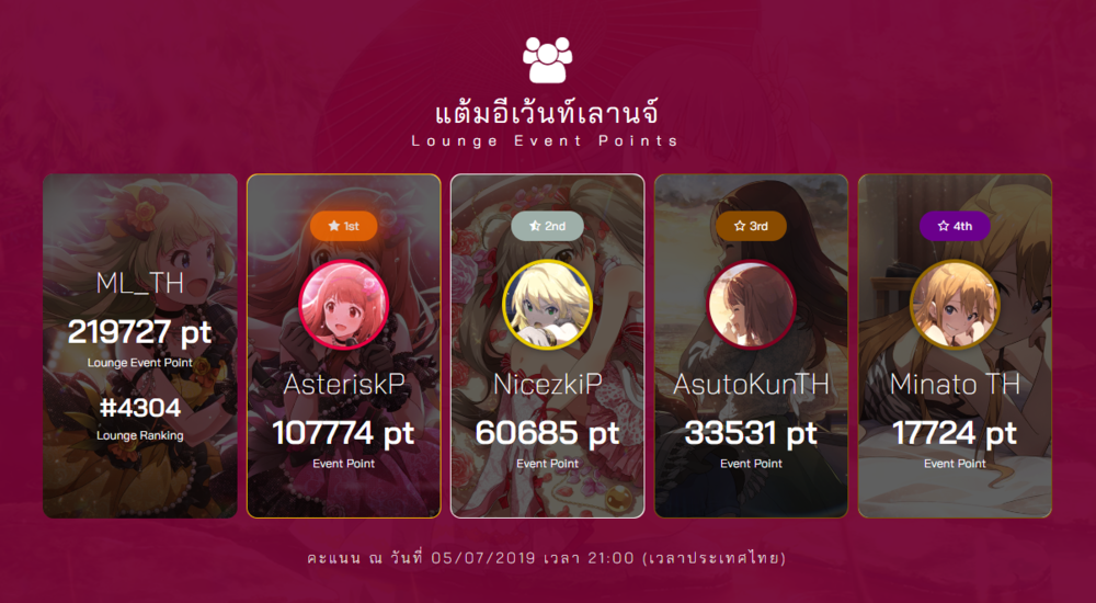 คะแนน ณ วันที่ 05/07/2019 เวลา 21:00 (เวลาประเทศไทย)