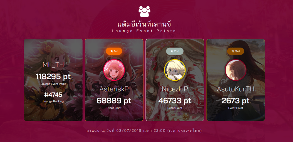 คะแนน ณ วันที่ 03/07/2019 เวลา 22:00 (เวลาประเทศไทย)