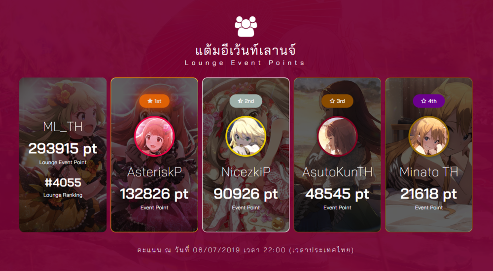 คะแนน ณ วันที่ 06/07/2019 เวลา 22:00 (เวลาประเทศไทย)