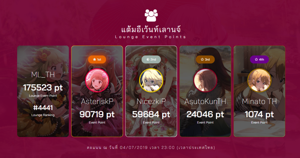 คะแนน ณ วันที่ 04/07/2019 เวลา 23:00 (เวลาประเทศไทย)